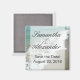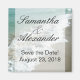 Celebrate your beach, cruise of destination theme nuptials with this beautiful ocean scene background save the date magnet or wedding favour magnet. Features aquatic blue ocean with white waves rushing onto the shore of light brown sand. Stylish, contemporary and elegant.