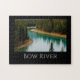 Scenic photography of Bow River, Alberta Canada. Black border with text overlay