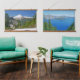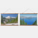 This set of tapestries shows two magnificent scenes from the Cascade Mountains. One shows a photo of Mount Baker, a volcano in Washington's North Cascades, overlooking an alpine landscape. Below the mountain, a tiny alpine lake peeks from behind some evergreen trees. Snow covers Mt. Baker's peak and lies in a field in the foreground. In the other photo, the vast waters of Crater Lake spread out beneath a blue sky. This iconic scene from Oregon's Cascade Mountains shows the famous blue water, the cone of Wizard Island, and the steep walls of the caldera. Enjoy these beautiful landscapes from the Pacific Northwest.