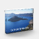 Acrylic photo block for display that features a photo image of the scenic, sapphire blue lake and Wizard Island in Crater Lake National Park, Oregon. Makes a great, travel souvenir and gift!
