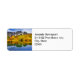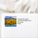 Address labels with a beautiful country photograph. Mountains of stone with an autumn forest in bright colours. A quiet lake reflects the mountains, trees and grasses.