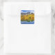 Stickers with a beautiful country photograph. Mountains of stone with an autumn forest in bright colours. A quiet lake reflects the mountains, trees and grasses.