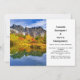 A wedding invitation with a beautiful country photograph. Stone mountains with an autumn forest in bright colours. A quiet lake reflects the mountains, trees and grasses.