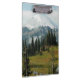 Keep your forms and papers in order at the office with this acrylic clipboard that features a scenic photo image of snow capped Mount Rainier and surrounding scenic landscape in the Pacific Northwest state of Washington. You may customise your clipboard by adding personalised text if desired. Image printed on both sides.