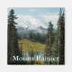 Square fridge magnet featuring a scenic photo image of Mount Rainier and surrounding scenic landscape in the Cascade Mountains of the Pacific Northwest, Washington State. Makes a great travel souvenir!
