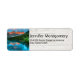 Address labels with a beautiful photograph featuring a beautiful mountain range, grey and rust colours. A green lush forest surrounds a calm clear lake. Gorgeous outdoorsy image. A wood texture image also layered beside the photo where you can add your personalised text.