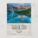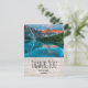 Thank you postcard with a beautiful photograph featuring a beautiful mountain range, grey and rust colours. A green lush forest surrounds a calm clear lake. Tranquil and peaceful image.