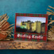 Scenic tabletop plaque features Stirling Castle illuminated at dusk, Scotland UK. Digital "watercolor" effects added to original photo, Clan Stewart tartan border