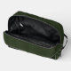 Zippered dopp kit toiletry bag that features a scenic, landscape photo image of snow capped Mount Rainier and subalpine landscape with evergreen trees, along with a solid, dark green top and sides. Perfect accessory bag for your toiletries for on-the-go travel!