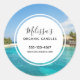 Business stickers with a beautiful photo featuring a tropical beach resort.
