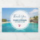 Container labels with a beautiful photo featuring a tropical beach resort.