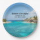 Scenic Tropical Beach with Thatched Huts Wedding Paper Plate