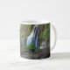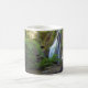 mug with a nice view of a waterfall amidst a forest.