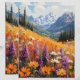 This exquisite painting captures the vibrant beauty of a field of wildflowers, showcasing a stunning array of colours that dance across the canvas. The delicate blossoms are set against a majestic backdrop of mountains, creating a harmonious blend of nature's splendour. Ideal for enhancing any space, this artwork evokes a sense of tranquillity and appreciation for the great outdoors, making it a perfect addition to both home and office decor.