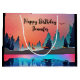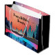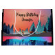 A gift bag with a beautiful graphic design featuring a peaceful lake with deer. and tall pine trees being reflected in the water. Stars hover overhead.