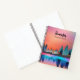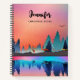 Spiral notebook with a beautiful graphic design featuring a peaceful lake with deer. and tall pine trees being reflected in the water. Stars hover overhead.