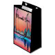 A gift bag with a beautiful graphic design featuring a peaceful lake with deer. and tall pine trees being reflected in the water. Stars hover overhead.