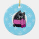 Cute winter theme with snowflakes and warm polka dot scarf compliment this original drawing of a Schipperke. Cute gift idea! Click the orange "customise it!" button to add text to the back, such as a pet's name, to create a truly one-of-a-kind-gift!