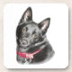 Cork coaster with Pet Schipperke dog picture. Known as "little captain" or "little skipper", a very active dog, loves to be involved and play. Curious and attentive, you can't help but fall in love with this "little black devil" face.