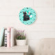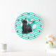 Schnauzer; Aqua Green Chevron Large Clock