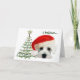 I believe in Santa Paws. White Miniature Schnauzer with Santa cap. Schnauzers-Rule.com