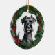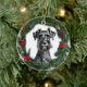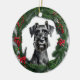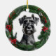 Fun Christmas ornament featuring cute Schnauzer in middle of a Christmas wreath.