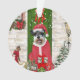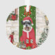 Schnauzer Dog Christmas sitting outside decorated home with Christmas wreath, Christmas tree is a perfect Christmas gift idea for dog lovers.