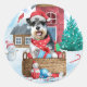 Schnauzer Dog In snow Christmas Dog House Classic Round Sticker