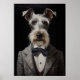 Schnauzer Dog Portrait Grey Suit Bow Tie Poster