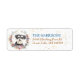 The left side of these return address labels feature an image of a spring flower wreath in colours of soft pink, blue, gold, green and cream. At the centre is a beautiful watercolor portrait of a Schnauzer dog. Tiny gold confetti gives a subtle sparkle to the background. Your custom text is in blue and brown gold at the right.
