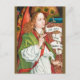 Postcard inspired by Martin Schongauer's beautiful and festive Annunciation angel, painted on one of the outer wings of the Orlier altarpiece, ca 1470-75.