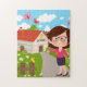 Teacher is ready to start the new school day as she interacts with her students outside this beautiful school. The school yard is well kept, boasting green lawn and beautiful flower gardens - above the red roof school house butterflies play under a clear blue sky with patches of white cloud. This should be a fun puzzle to put together - especially for the children in the family.