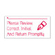 This respectable rubber stamp design features the message "Please Review, Correct, Initial, And Return Promptly.", along with a line where a signature or initials could be written above. It could perhaps be used by an educator or an administrative professional to request that somebody review and acknowledge the contents of a document.