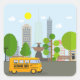 A school bus with the city in the background. This design looks really effective on these Stickers