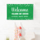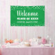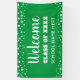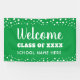 Welcome banner for school class reunion with confetti stars border. Edit the class year and school name, and change the green background to your school colour if you like.