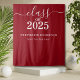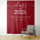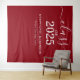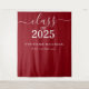This minimalist and modern graduation backdrop/photo booth/prop tapestry features a burgundy background with the words "class of 2025" in elegant stylish font. Customise name and school name of your graduate. Easy to customise.