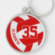 This volleyball themed metal keychain features the realistic image a red and white volleyball, upon which you can customise the player's name & jersey number in a varsity letter style font - by katz_d_zynes