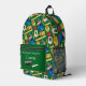 A fun backpack with a school theme that can be used all year round. This sturdy bag is great for books, sports gear, travel and more. It has a zipper pouch in the front, designed to look like a chalkboard, with an area for you to customise.