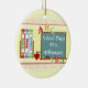 Cute school themed and personalised teacher ornament! This double sided ceramic round ornament features a school/teacher theme with an artistic illustration of a classroom with chalkboard/blackboard, with books, an apple and ABC's and 123's too! The chalkboard area of the design reads "school days" and is ready for you to personalise with a name using our easy to use template area field on this page. Add the year to the back of the ornament as well! A wonderful addition to your ornament collection, and a great gift for family member or friend! For more teacher or school themed cards, invitations, accessories and gifts please visit our shop!