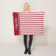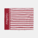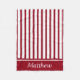 Ticking inspired stripes in shades of School Days Red and Crisp White with a matching border the you can personalise with your choice of name or special text.
