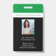 A professional employee staff badge for teachers, educators, staff of your school campus. Works for all school types private, public, pre-school, elementary,high school and college. Modern green, white and black colour theme. Add employees photo, job title and school motto or creed.