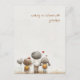 This back-to-school postcard design features an elderly man holding hands with his grandchildren. This minimalistic design is supported by heart-shaped balloons and a customisable text.