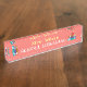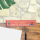 A coral desk nameplate with two stacks of books and a red apple designed for school librarians .