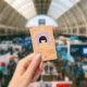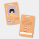 A cute vertical photo ID badge for school librarian or any school staff . It is a light orange , has a spot for a big photo and a little watercolor illustration . Personalise it with the educator's name , picture , job title , academic year , school name and address .
