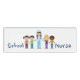 A kid-friendly name tag created for a school nurse serving elementary schools or early childhood centres.