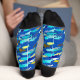 Socks in a school of fish in a deep blue ocean - shades of blue, turquoise, gold and white
