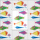 Cute fish art in shades of light blue pink green orange yellow and purple