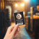 Features round photo cutout. Background colour and circular frame colour is customisable Upload your photo, business logo, and bar code if needed. All background colours and fonts are customisable.