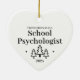 First Christmas as a School Psychologist heart ornament. Elegant porcelain ceramic holiday ornaments in white with black lettering. Featuring Christmas trees and stars.