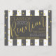 School Reunion design, please personalise text where relevant. Golden confetti in the background. White and grey vertical stripes. Elegant style.